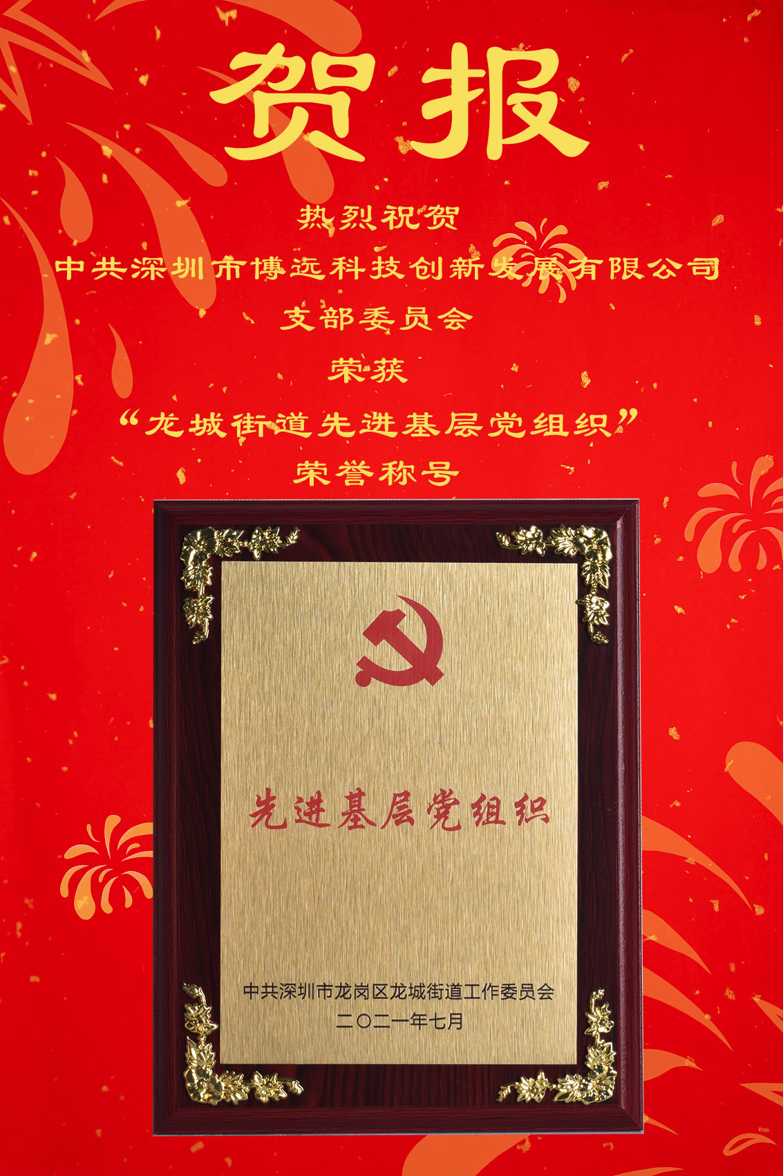查看詳情 >熱烈祝賀中共深圳市博遠科技創(chuàng)新發(fā)展有限公司支部委員會榮獲“龍城街道先進基層黨組織”榮譽稱號